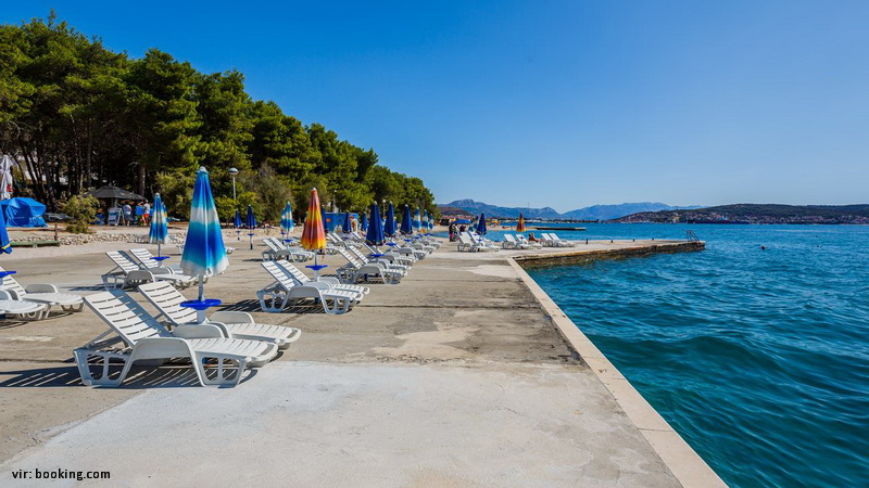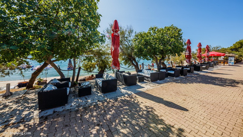 PLAŽA: 200 m od glavnega kompleksa, prodnata, betonirana in skalnata plaža. Naravna senca ob plaži.