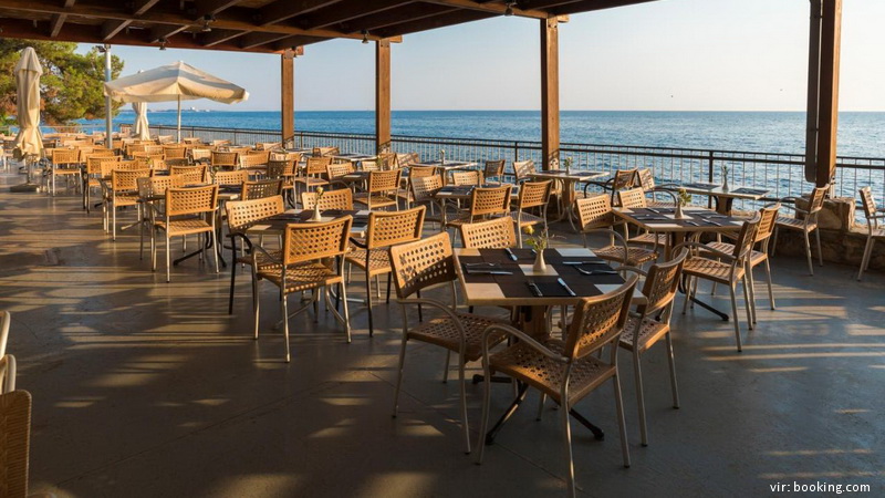 Cenovno ugodna namestitev, le nekaj korakov do plaže. Namestitev je možna v objektu Moj Mir ali pa v bungalovih. V ceni počitnic je polpenzion z vključeno pijačo ob večerji, obroki pa se strežejo v penzionski restavraciji s teraso ob morju.