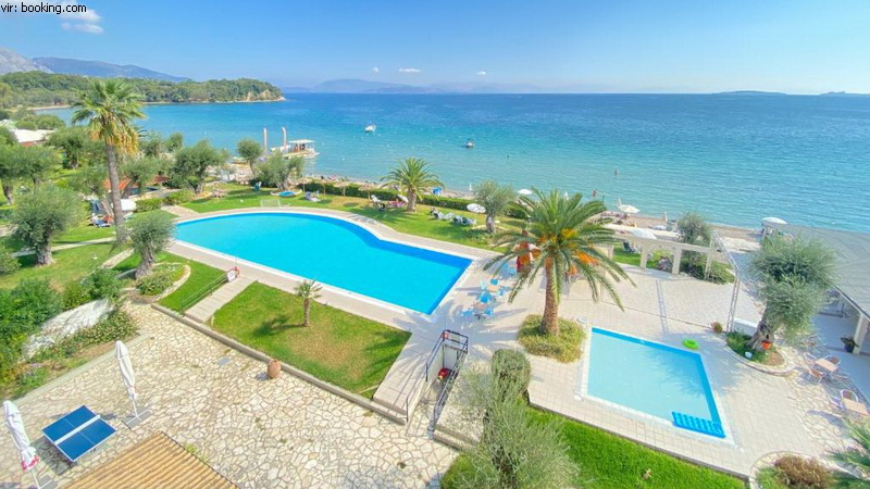Lega: ob prodnato peščeni plaži, v kraju Dassia, 12 km od mesta Krf in 14 km od letališča.