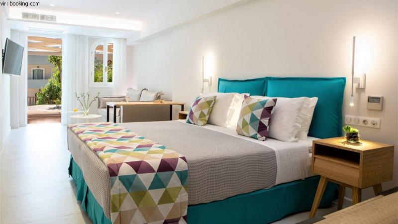 Nastanitev: Standardne sobe z eno malo širšo in eno ločeno običajno veliko posteljo in zato brez možnosti namestitve dodatnega ležišča imajo kopalnico s tušem, WC, samostojno nastavljivo klimatsko napravo, najemniški sef, TV, telefon, hladilnik in balkon, večinoma s stranskim pogledom na morje. Deluxe sobe so enako opremljene s tem, da so seveda sodobnejše, saj so bile leta 2019 popolnoma obnovljene. Na poizvedbo vam lahko rezerviramo tudi superior studie, ki so bili prav tako obnovljeni leta 2019, so prav tako sodobni in enako opremljeni, s tem, da imajo dodatno še kuhinjsko nišo, so malce prostornejši in se nahajajo v pritličju, tako, da imajo namesto balkona teraso.