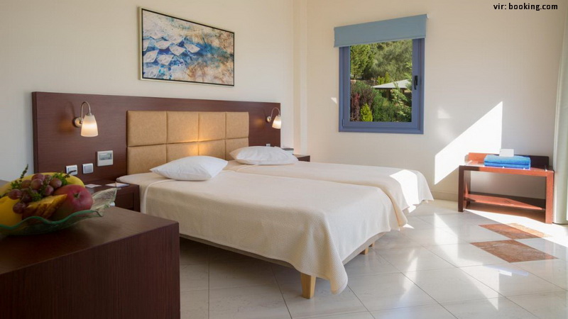 Lega: hotelski kompleks z visoko kvaliteto storitev in prenovljenimi sobami v 2018 leži na obalnem pobočju ob lastni plaži, do mesta Nikiana je približno 4 km, do Nidrija 5 km in do letališča 30 km. V bližini hotela se nahaja avtobusna postaja.