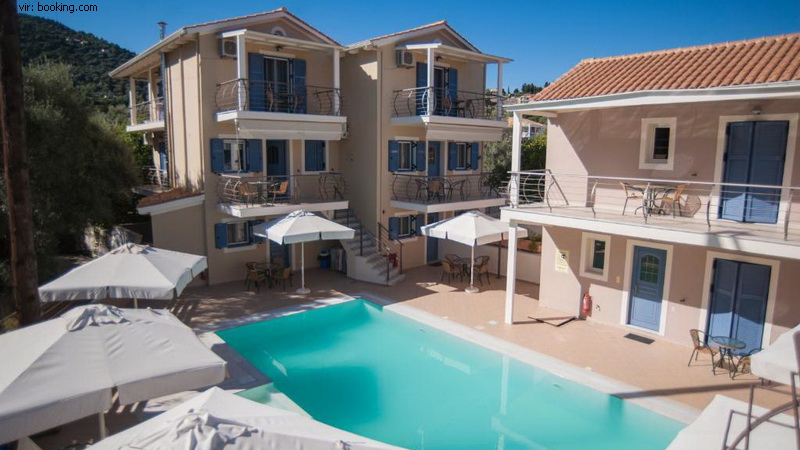 Lega: Popolnoma nov kompleks s studii in apartmaji se nahaja v obalni vasici Nikiana le 150 m od lepe peščeno-prodnate plaže. Nedaleč stran najdete taverne, restavracije, trgovinice, kavarno, lekarno in pekarno. Do najživahnejšega letovišča na otoku Nidrija je 8 km, do glavnega mesta pa 9 km.