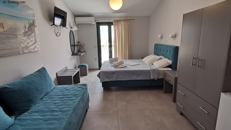 Lega: Pri ljubiteljih vodnih športov izredno priljubljen hotel leži na južnem delu otoka v zalivu Vassiliki, v neposredni bližini windsurf kluba Vass, le 150 m od prekrasne prodnate plaže in le 1 km od središča mesteca.